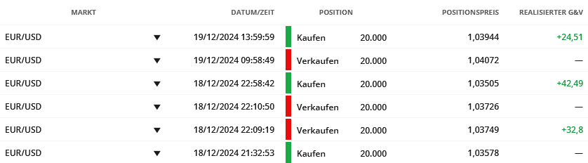 The FED meeting on 12/18 brought increased volatility and we use this for our scalping strategy for the micro accounts. We did 3 trades (2 sell and 1 buy trade) with a total performance of 2.7% or EUR 99.80.